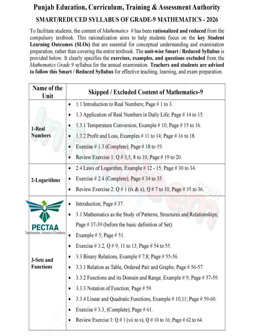 📘 Introduction – 9th Class Math Pairing Schemes and Model Papers 2025–27