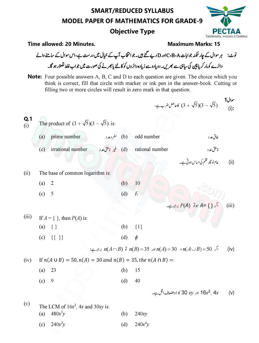 To make it easy for students, Infotaleem.com provides free downloadable PDFs for both the Math Pairing Scheme and Model Papers.