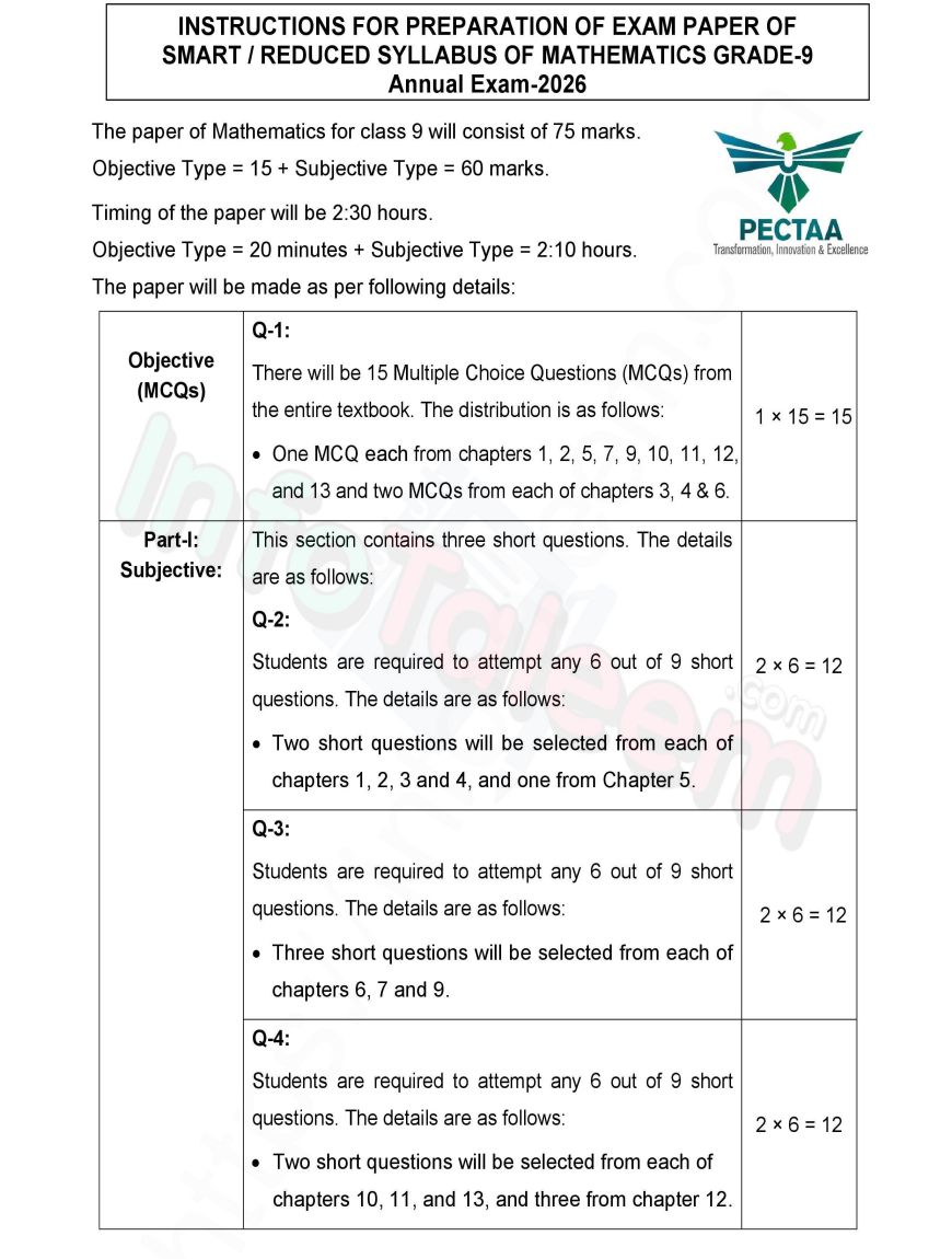 Preparing for Mathematics exams becomes easier when you know the paper pattern and question distribution. At Infotaleem.com, we bring you the latest 9th Class Math Pairing Scheme 2025–2027 and Model Papers for all Punjab Boards, based on the Smart ALP (Accelerated Learning Program) Syllabus.