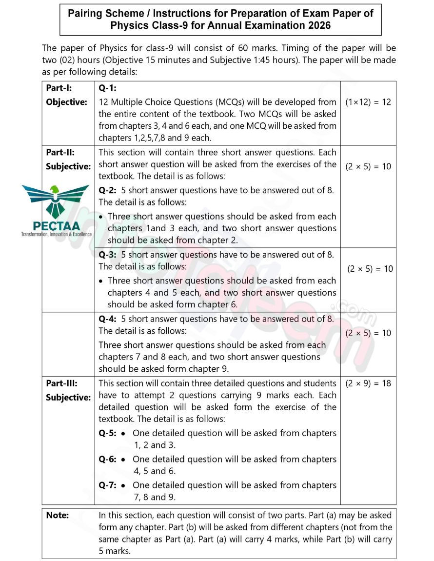 📥 Download 9th Class Physics Pairing Schemes & Model Papers PDF 2025-27