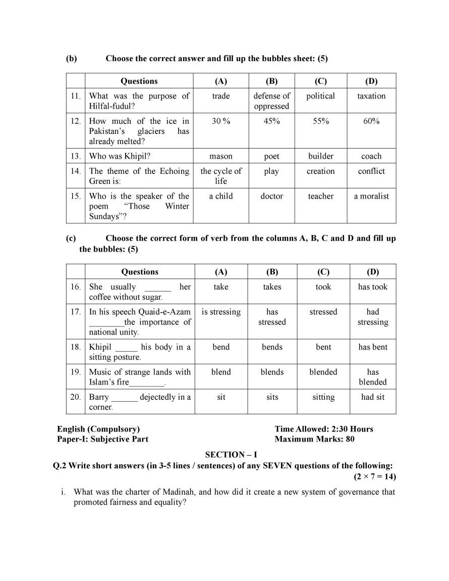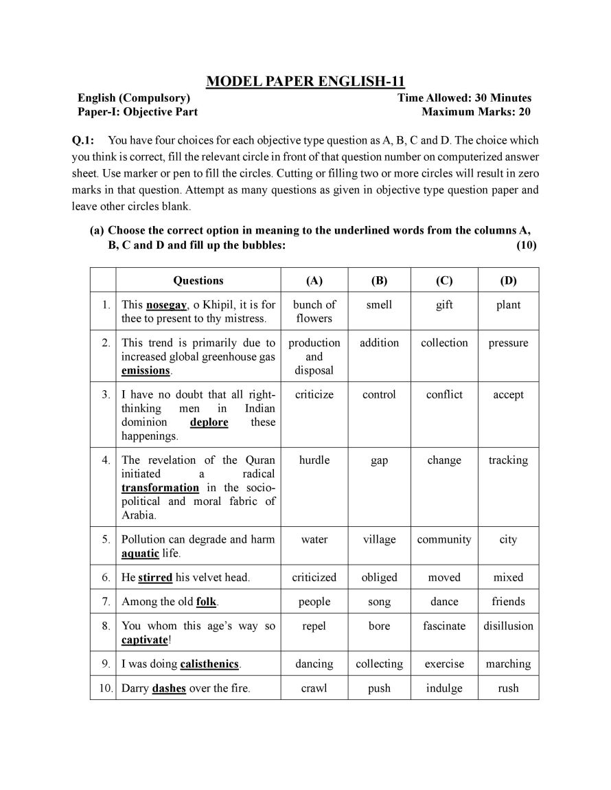 - English Model Paper (Objective + Subjective)