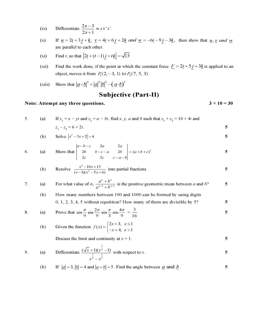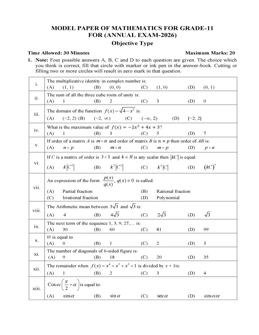 Class 11 Math Pairing Schemes and Model Papers 2025-27