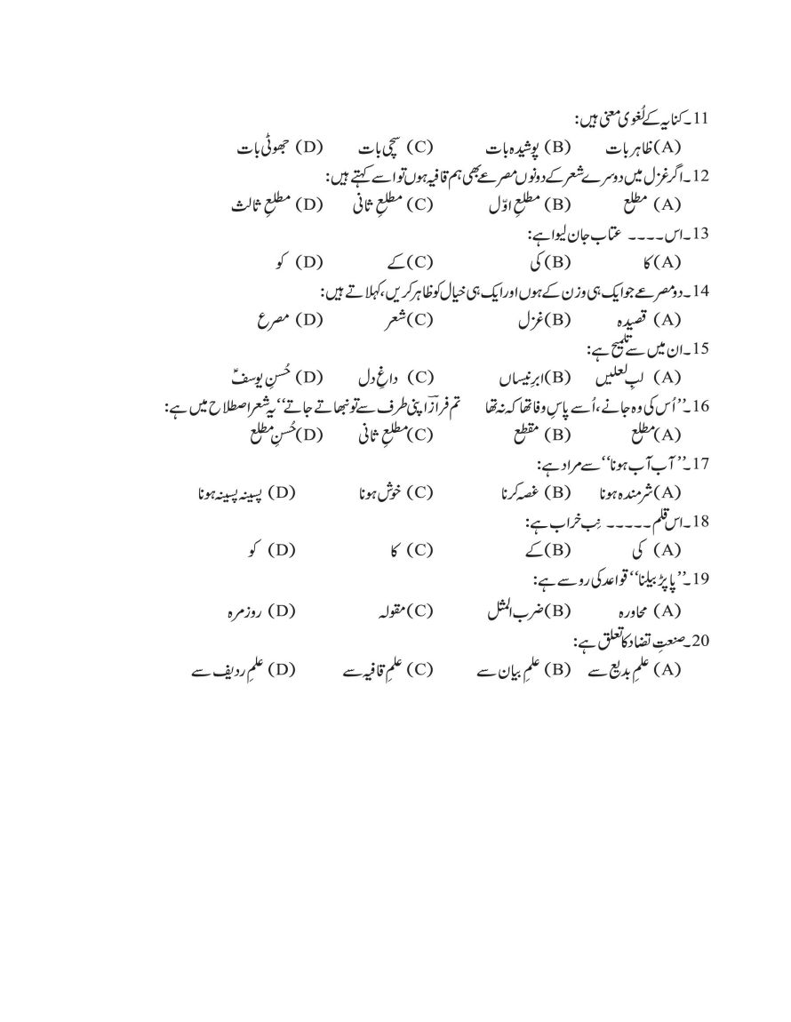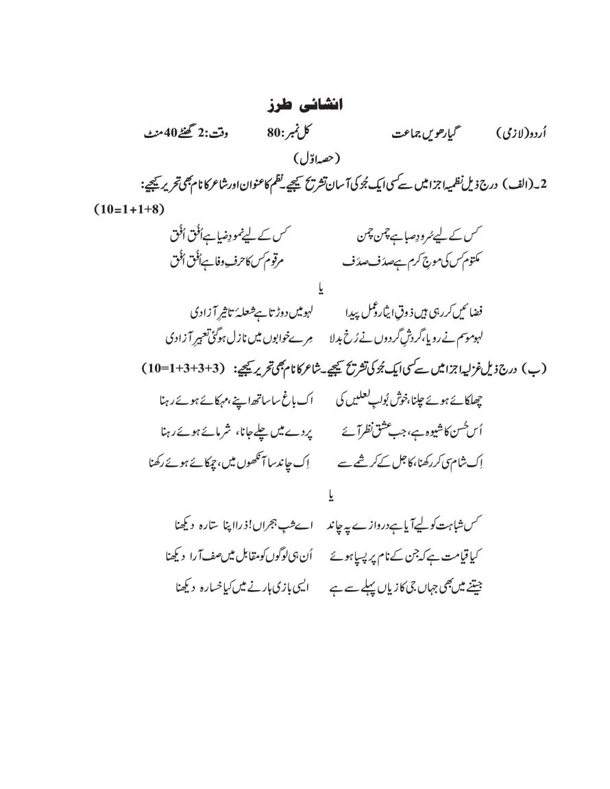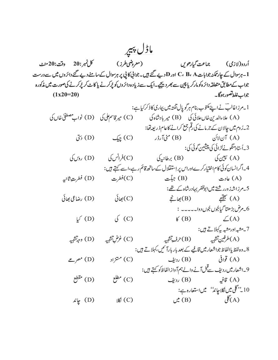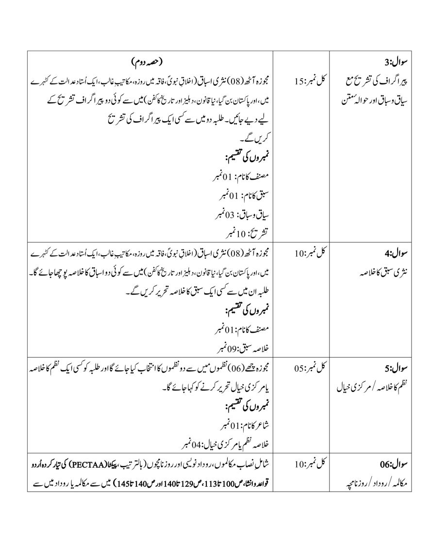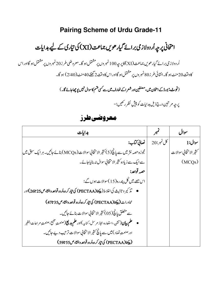 Class 11 Urdu Pairing Schemes and Model Papers 2025-27