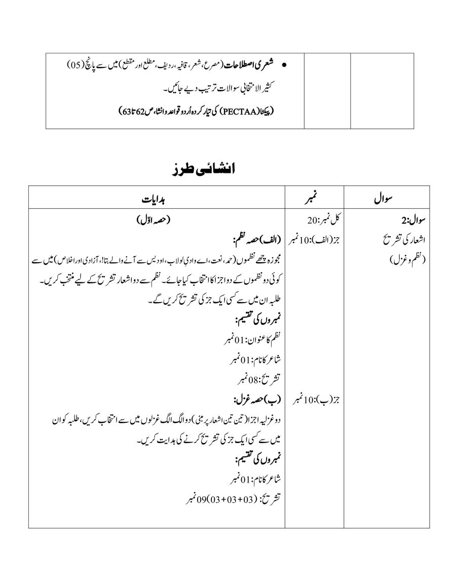🔹 Class 11 Urdu Revised Pairing Scheme 2025–27 (Punjab Boards)
